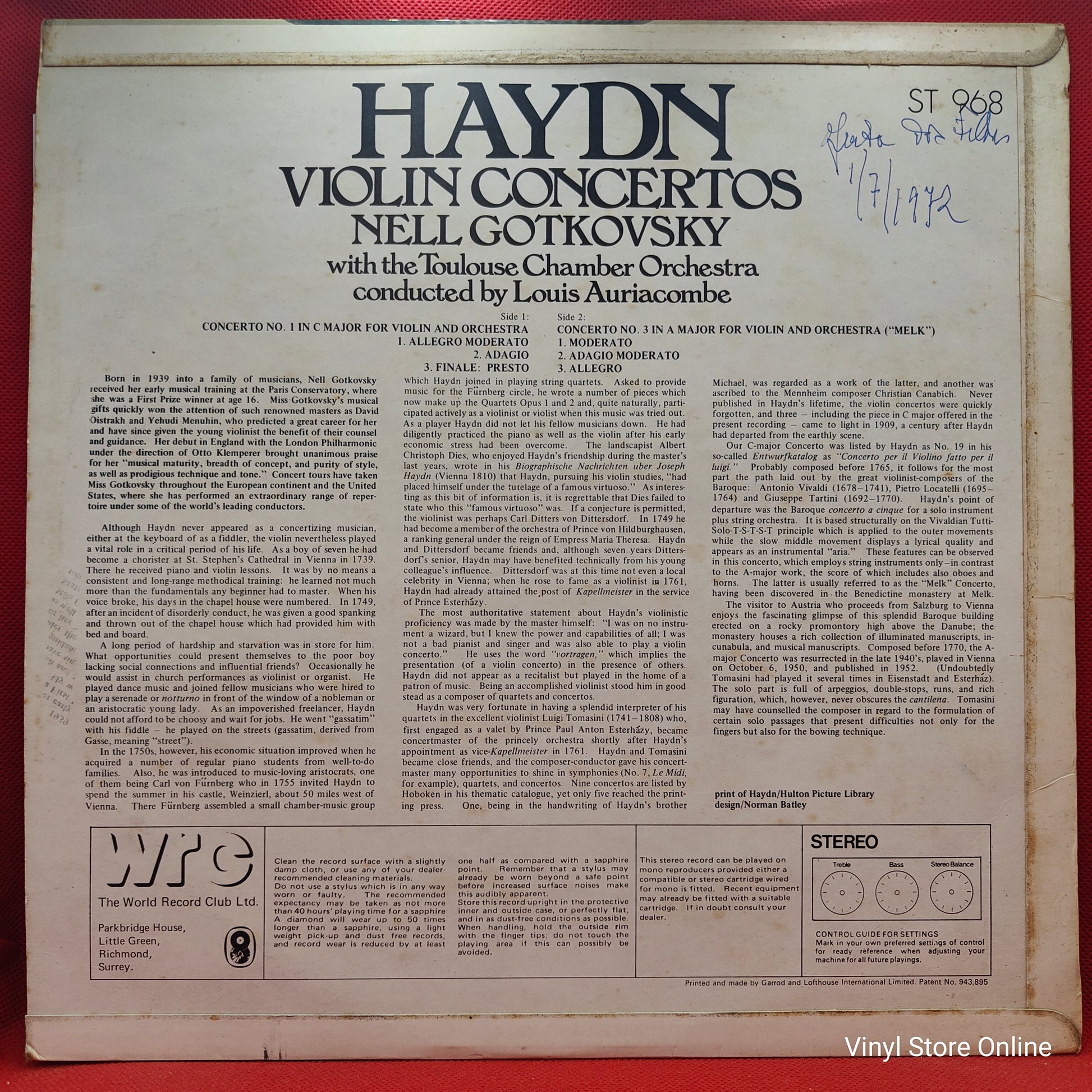 Haydn, Nell Gotkovsky ‎– Violin Concertos: No. 1 In C Major / No. 3 In A Major