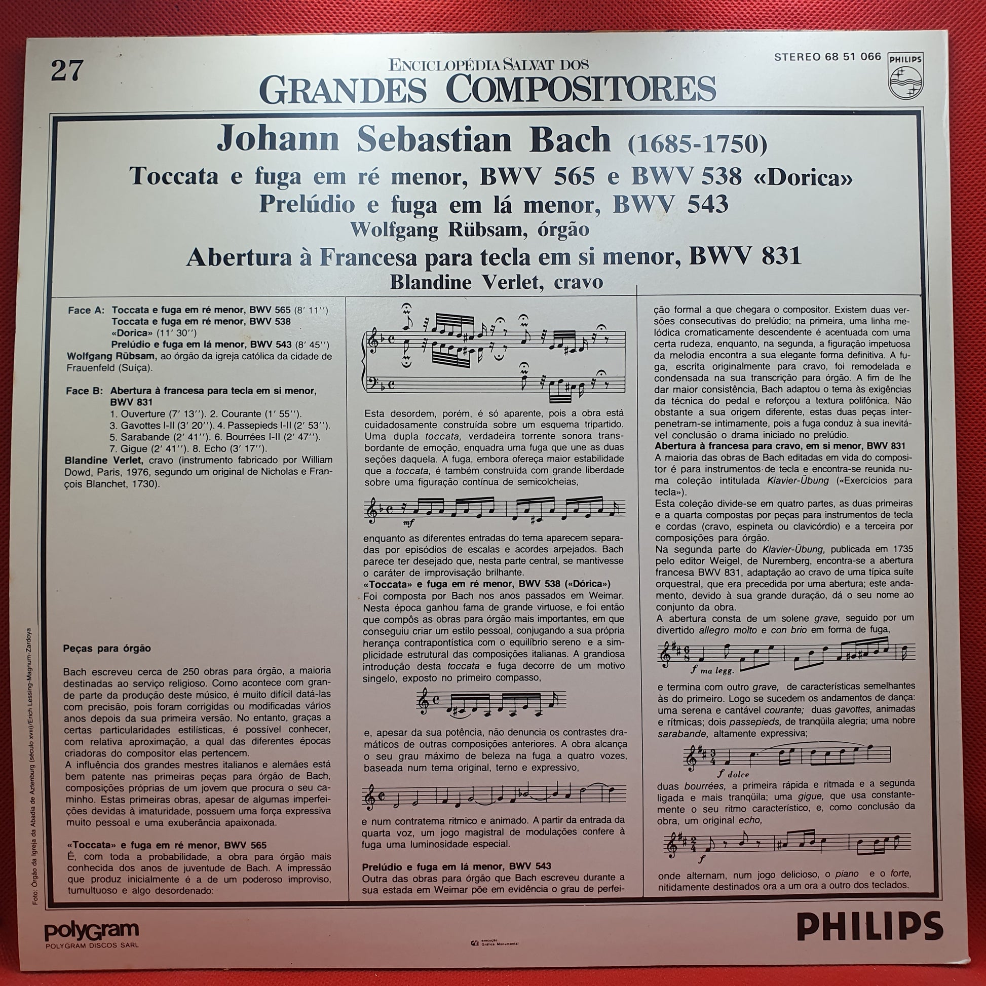 J. S. Bach - Wolfgang Rübsam, Blandine Verlet ‎– Toccata E Fuga Em Ré Menor, BWV 565 E BWV 538 «Dorica» / Prelúdio E Fuga Em Lá Menor, BWV 543 / Abertura À Francesa Em Si Menor, BWV 831