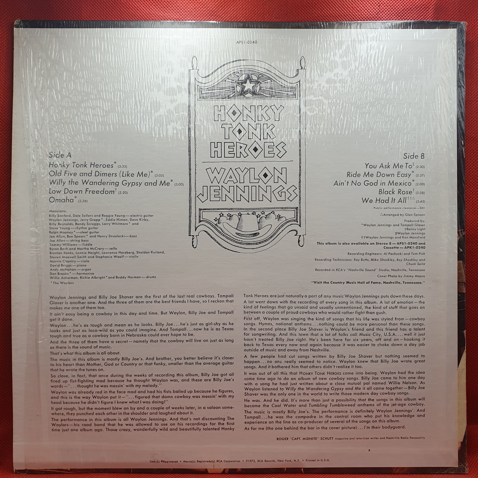 Waylon Jennings ‎– Honky Tonk Heroes